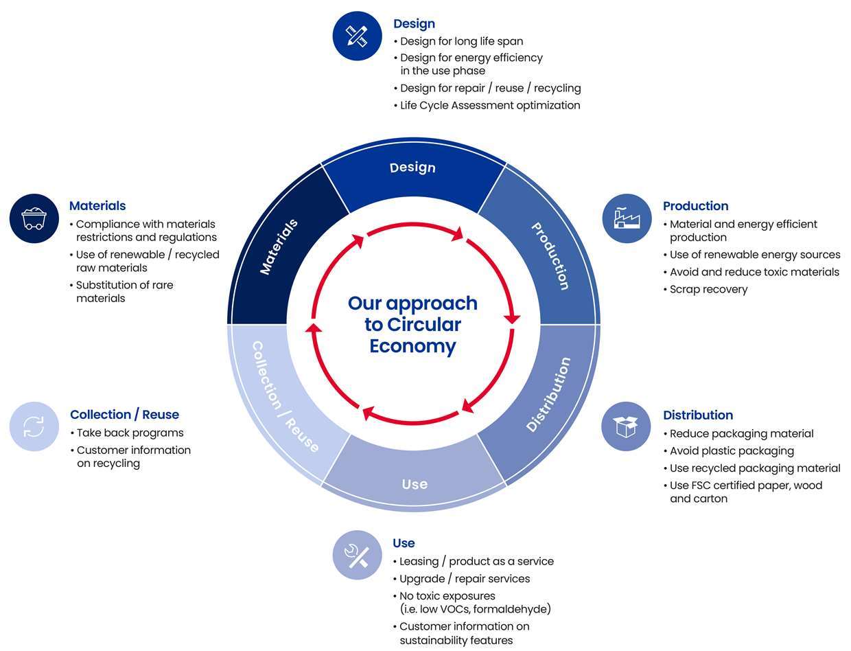 We are aware that the sustainability of our products is essential for our success. The Product Sustainability department, under the Global Innovations function, acts as a competence center for all product clusters globally. It provides the right resources, skills, and expertise, and is responsible for shaping a state-of-the-art development environment for product sustainability. This includes, for example, developing Environmental Product Declarations, incorporating sustainability criteria into all product development-related processes, and elaborating guidelines.