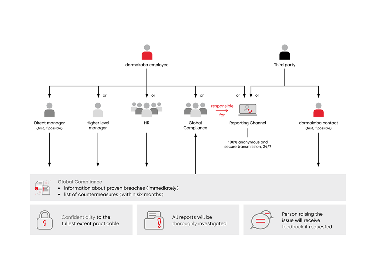 We gather whistleblower feedback on the toolʼs design, such as accessibility, and incorporate it into regular system updates. The Global Compliance department monitors the implementation of agreed remediation measures.